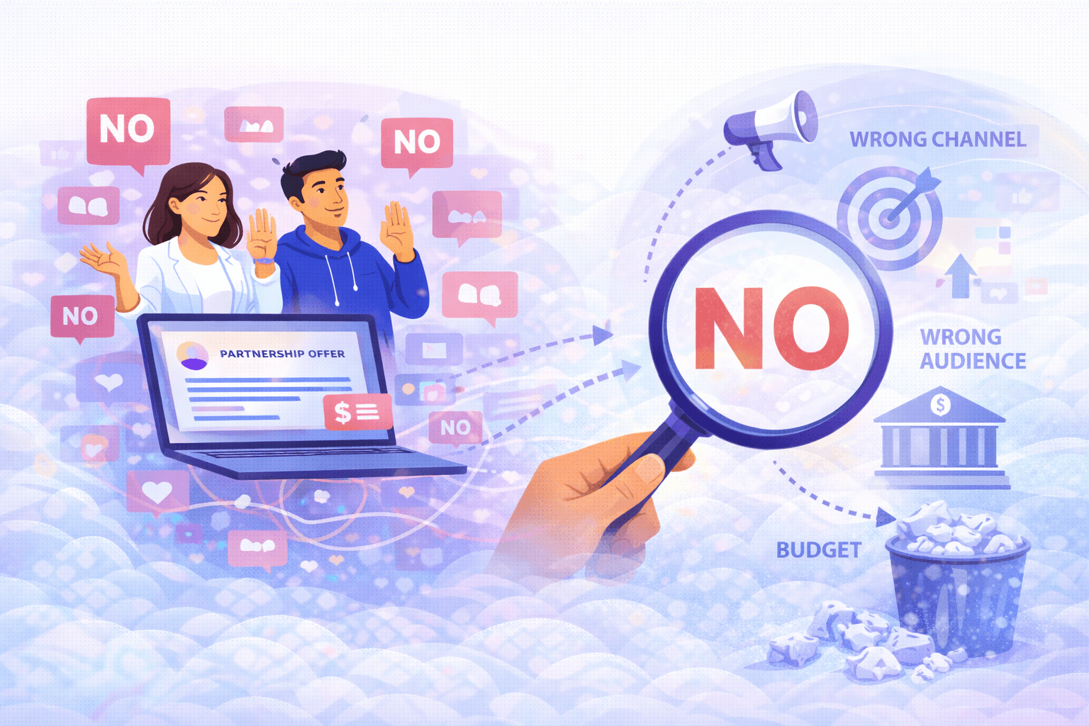 Creator rejection is not a sourcing inconvenience, it is a GTM signal. When credible B2B creators decline partnerships even with strong budgets, it usually has less to do with price and more to do with trust, fit, and risk. Top-tier creators treat audience credibility as a finite asset, and a single misaligned sponsorship can damage their authority with the exact practitioners and decision-makers brands are trying to reach. That is why the pay-for-post model is breaking down in B2B: creators are optimizing for long-term reputation, not short-term payouts, and they can spot vague positioning, thin proof, or category fatigue faster than most teams can. This piece shows how to treat "no" as diagnostic data and use it to tighten your messaging, targeting, and partnership strategy. It breaks down the non-financial drivers behind rejection, explains how to distinguish bad outreach from deeper product-market fit issues, and offers a practical framework for building an Ideal Creator Profile that improves acceptance rates. It also compares general influencer marketplaces with dedicated B2B platforms, including Limelight vs Upfluence and Limelight vs Thinkers360, and closes with the metrics that matter when alignment is the strategy: acceptance rate, time-to-activation, pipeline influence, and GTM efficiency, plus what the shift from renting audiences to building partnerships will look like in 2027.